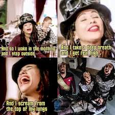 And i step outside and i take a deep breath. And Im I am feeling a little peculiar. And I scream from the top of my lungs. And I take a deep breath and get real high.